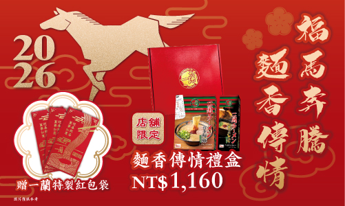 🐎福馬奔騰 麵香傳情🍜春節贈禮講究體面又要好吃?一蘭春節限定麵香傳情禮盒是你的最佳選擇 ◆ 春節限定 - 麵香傳情禮盒 ◆一蘭拉麵 博多細麵(5入)x1一蘭拉麵 釜醬汁豚骨細麵(2入)x1 1/2 (五) 10:00 起 店舖 限定販售一次擁有兩大人氣麵款附贈一蘭特製紅包袋組🧧 以及精美包裝服務✨送禮應景又大方 企業大宗採購請洽詢將由專人為您服務聯絡我們※貼心提醒紅包袋數量有限,送完為止本公司保有修改及終止活動權利